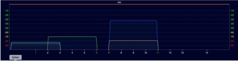 The one at channel 36 in the 5GHz band with RSSI of -59dBm is the one in the hallway. An interesting point here is the lack of the BSSID at 5GHz from the unit in the living room.